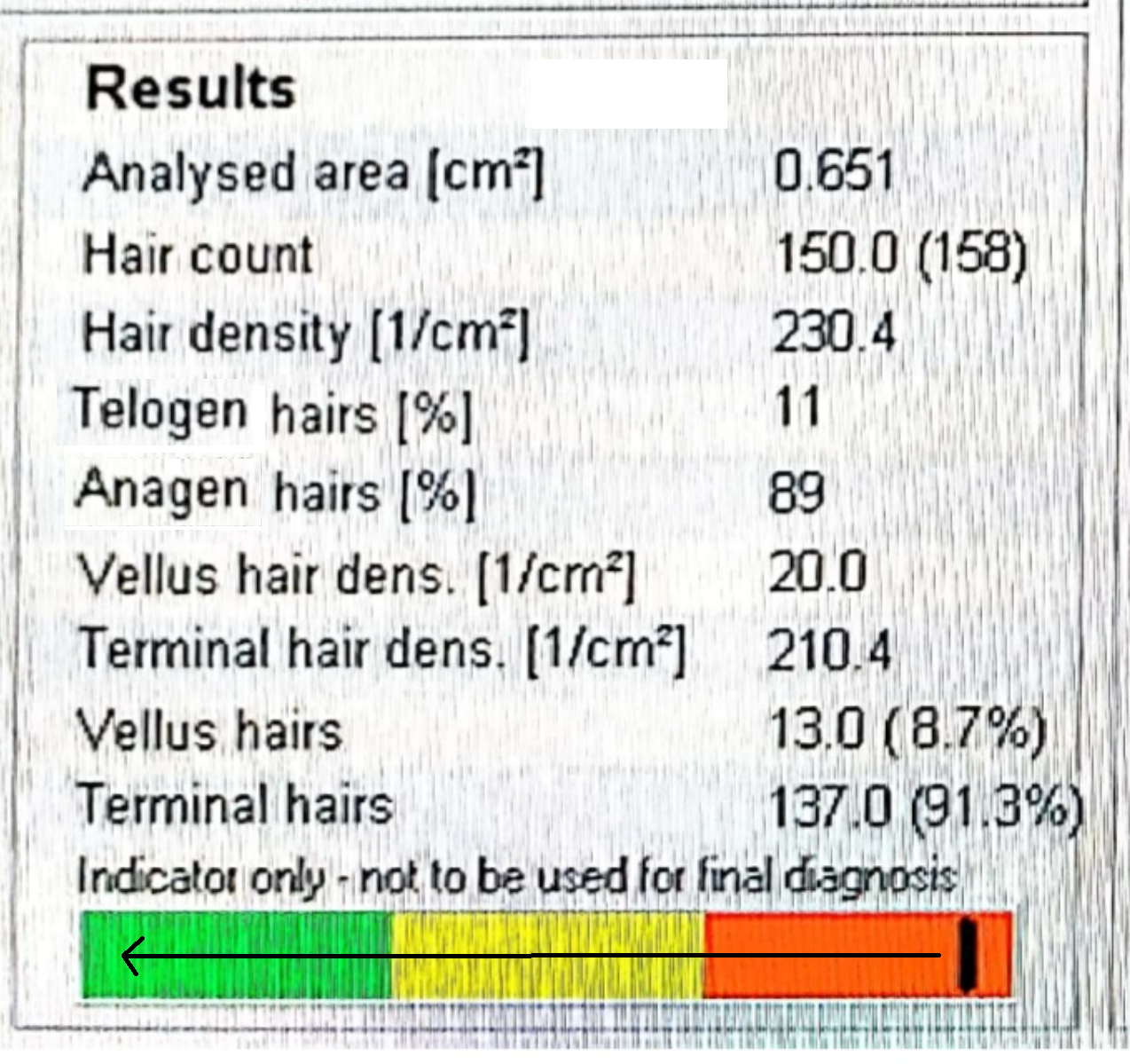 Όπως βλέπεις και από το τύπο αραίωσης που έχεις η αραίωση είναι πιο έντονη στο κέντρο και πολύ λιγότερο στα άκρα (ειδικά vertex). Κανονικά έπρεπε να σου κάνει τριχόγραμματα σε 3 περιοχές (2 άκρες και μέση).