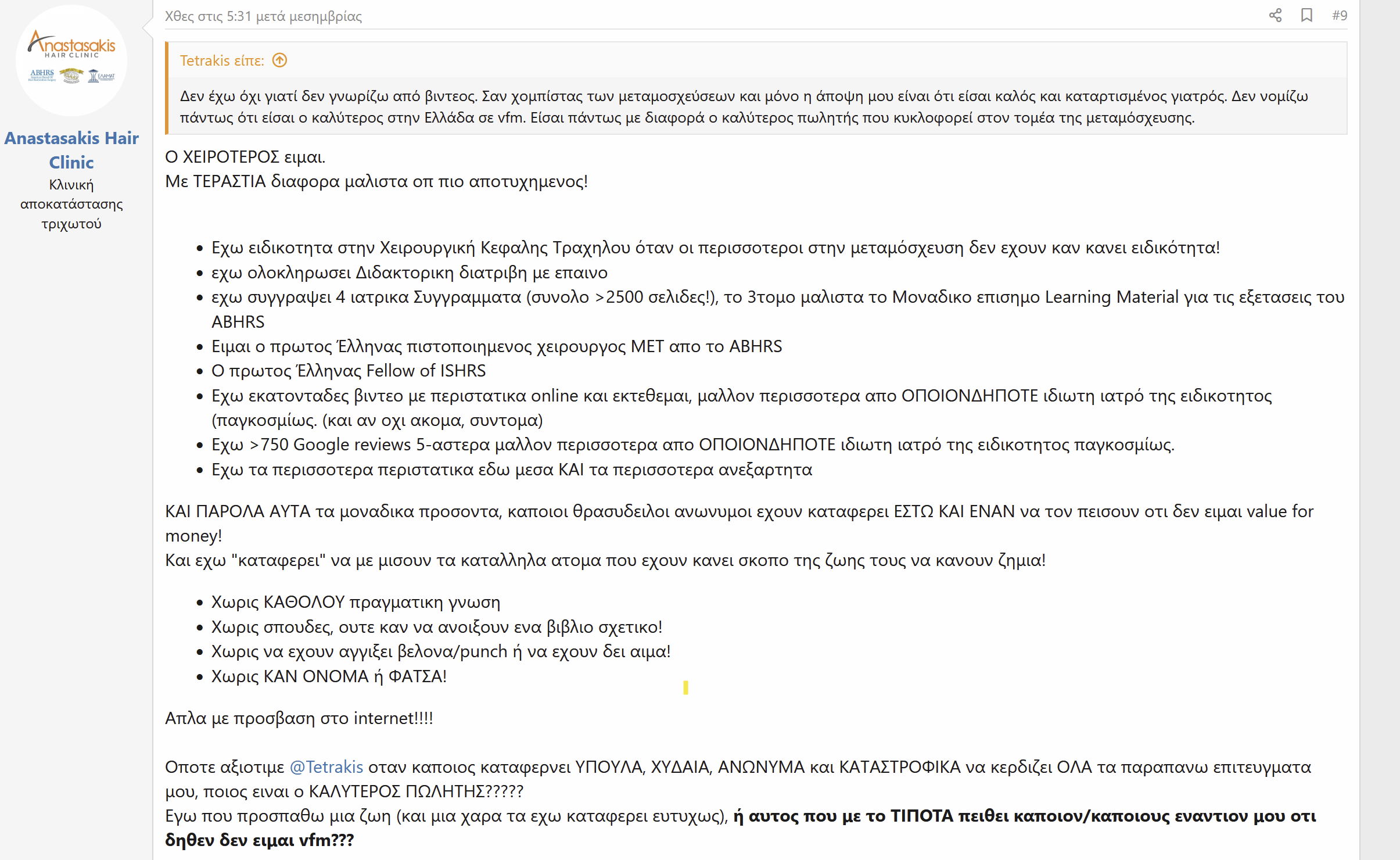 @Anastasakis Hair Clinic, δικαιώθηκες από τα δικαστήρια που έτρεχες τον ασθενή;Τι να κάνω, με πιάνει το OCD.