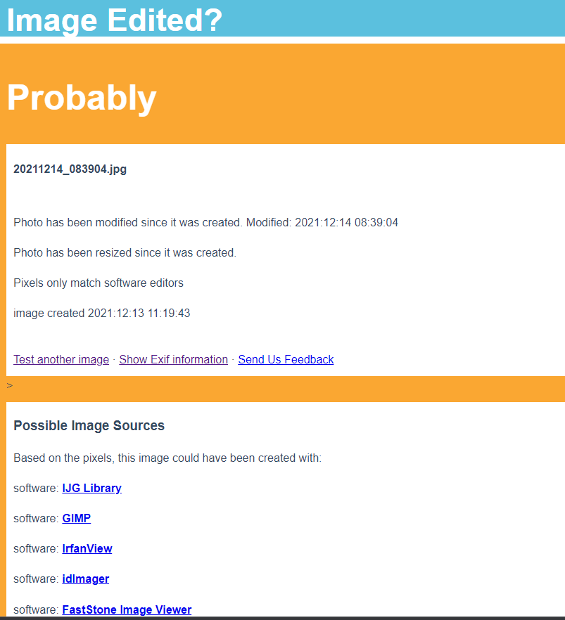 με ανεβασμα της εκαστοτε φωτογραφιας, δουλευει μια χαρα(σου δειχνει εαν και που εχει επεξετγαστει)! Επισησ υπρχουν αλλα εργαλεια οπως αυτο http://imageedited.com/ που στα λεει πιο λιανα.