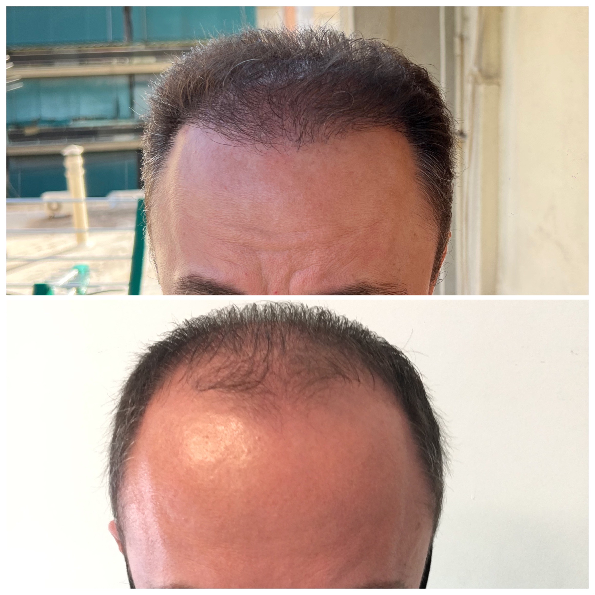 Διαφωνώ κάθετα. Μην πάμε να το ρίξουμε στην κατανομή των g μόνο. Από την παρακάτω φώτο (η χειρότερη όπως λες, εγώ διαφωνώ η αριστερή πλευρά είναι η χειρότερη, για αυτό και την αναδημοσιεύω αφού την έχεις ποστάρει) είναι εμφανές ότι υπάρχει θέμα φύτρωσης στην hairline όχι σε επίπεδο g αλλά σε αριθμό τριχών (και ποιότητας). Αυτό φαίνεται και από την επόμενη φώτο της αριστερής πλευράς (που δεν ποστάρεις).