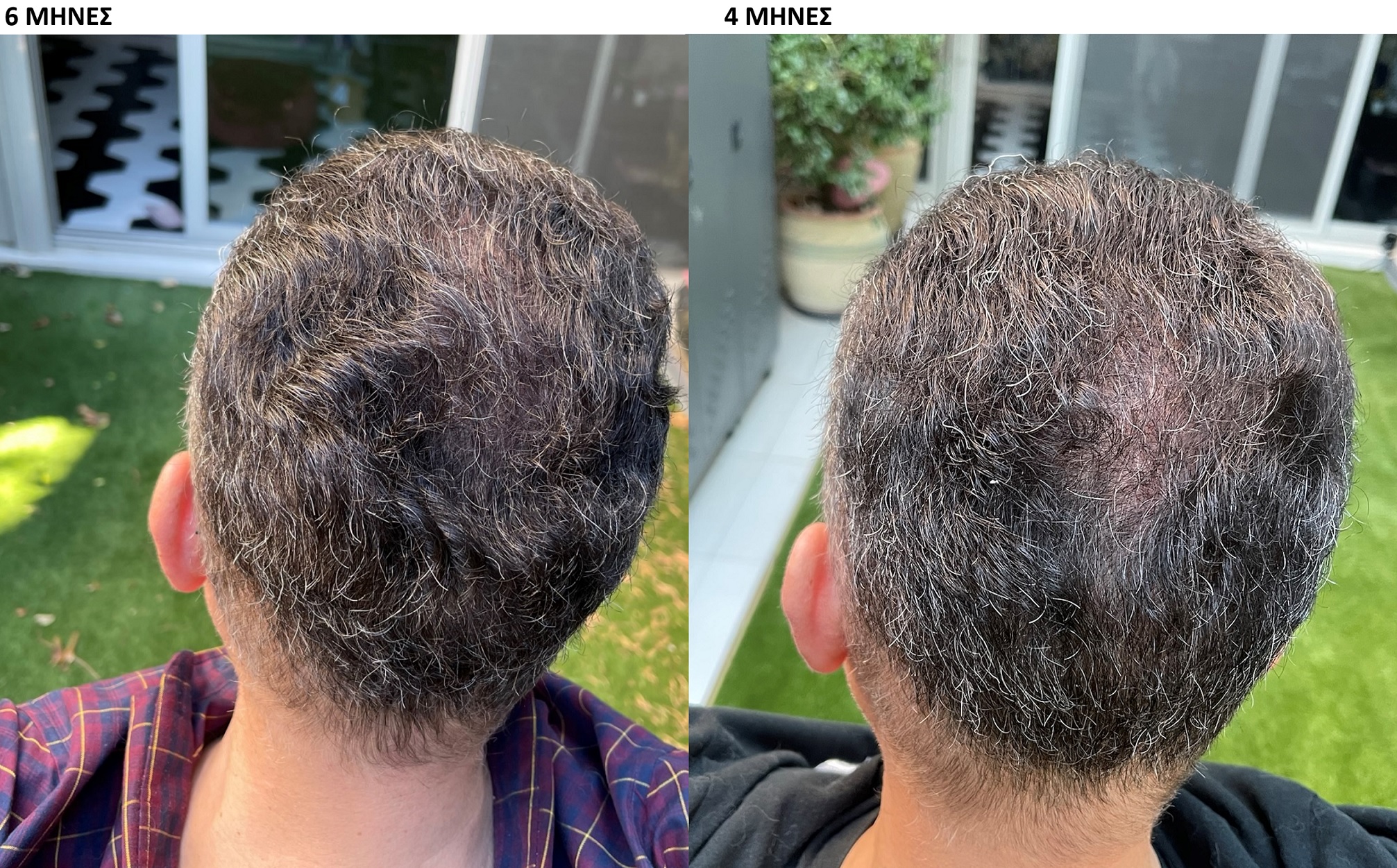 6 μήνες και κάτι μέρες. Το crown έχει μεγάλη διαφορά από τον 4ο μήνα. Σε συνθήκες καλού εσωτερικού φωτισμού δεν φαίνεται πλέον (φώτο κάτωθι) ενώ ακόμα και σε σκληρές εξωτερικές συνθήκες φαίνεται πως κρατά καλά. Με δεδομένο ότι δεν βάζω τίποτα και εκ της προηγούμενης εμπειρίας την μέγιστη κάλυψη την πετυχαίνω από τον 6-8 μήνα (λόγω ωρίμανσης του πάχους της τρίχας), θεωρώ ότι ο στόχος θα επιτευχθεί.