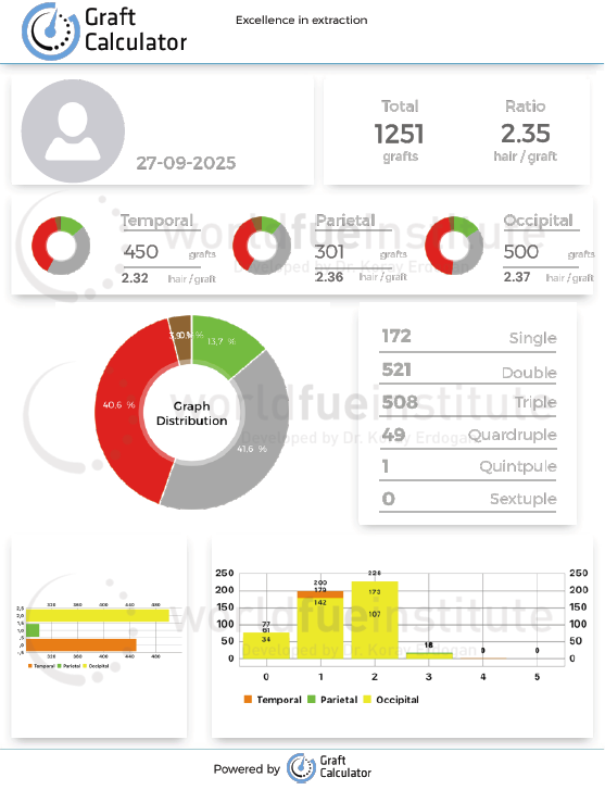 Αποτέλεσμα: 700g στο crown (περίπου 40 4τριχα, 500 3τριχα, 160 2τριχα =λογος 2.83) και 550 για hairline και temporal peaks κυρίως μονότριχα και κάποια δίτριχα. Συνολικό λόγος 2,34 λόγος αν δεν κάνω λάθος. Φυσικά θα ακολουθήσει αναλυτικό ρεπορταζ μόλις πάρω τα στοιχεία από την κλινική.