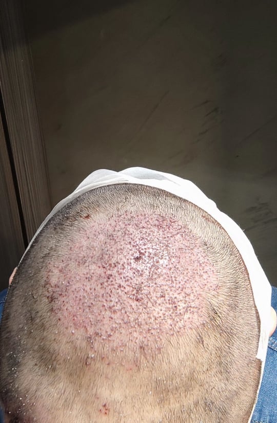 Συνεχίσαμε κανονικά με το να βάζει grafts o γιατρός με μερικά break ακόμα μέχρι να τελειώσουμε. Από κάτω φωτο δικές μου μετά το τέλος της πρώτης ημέρας.
