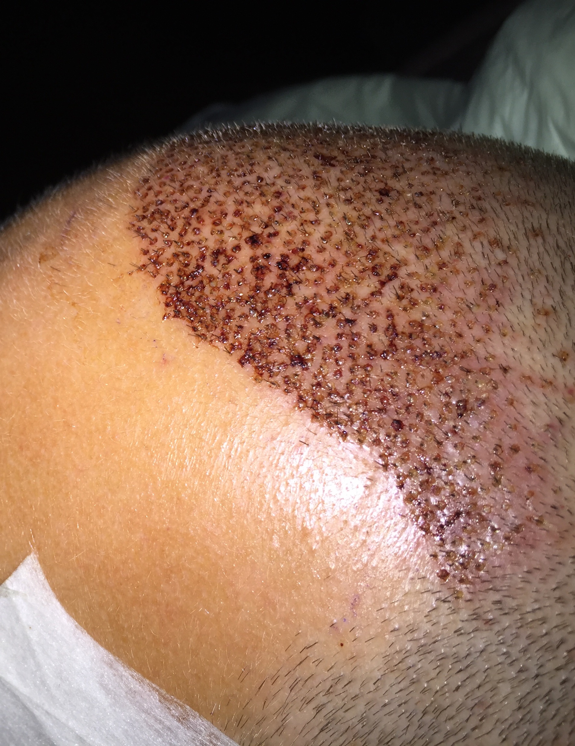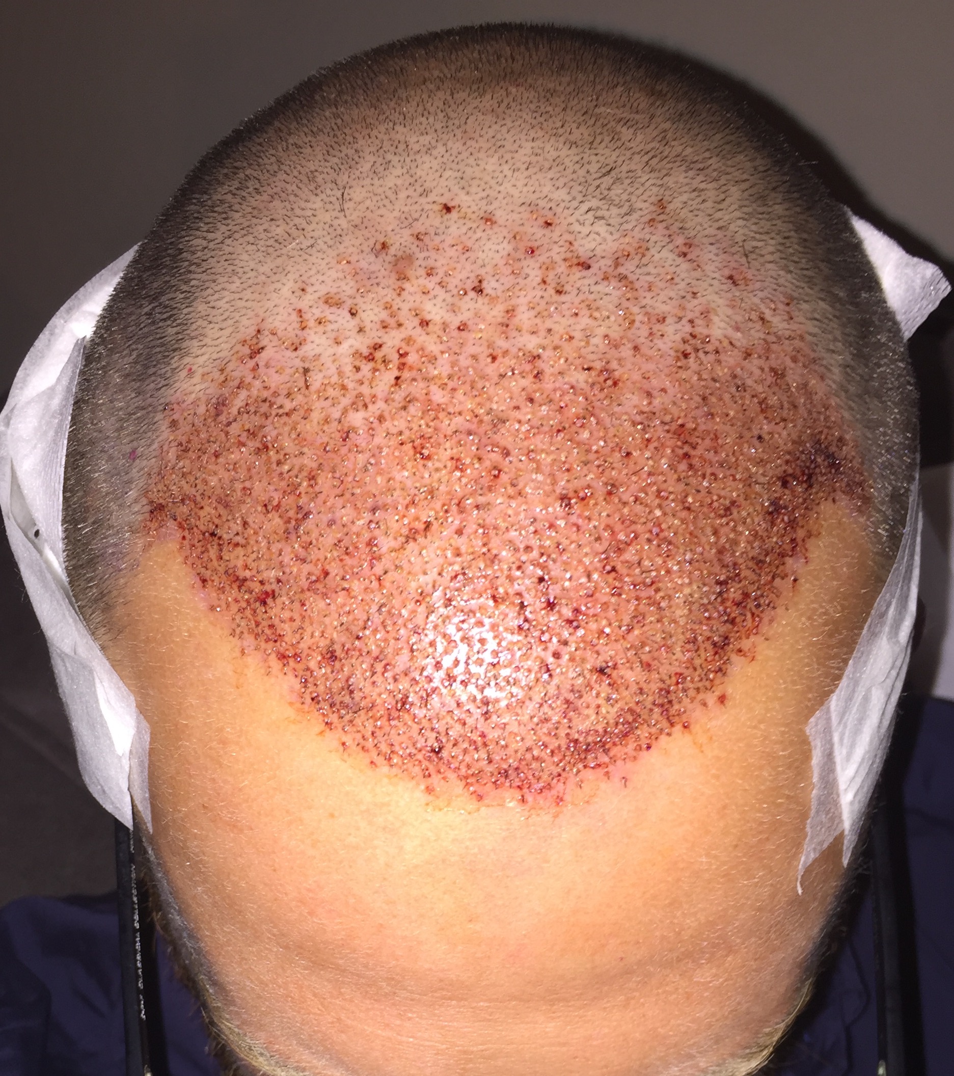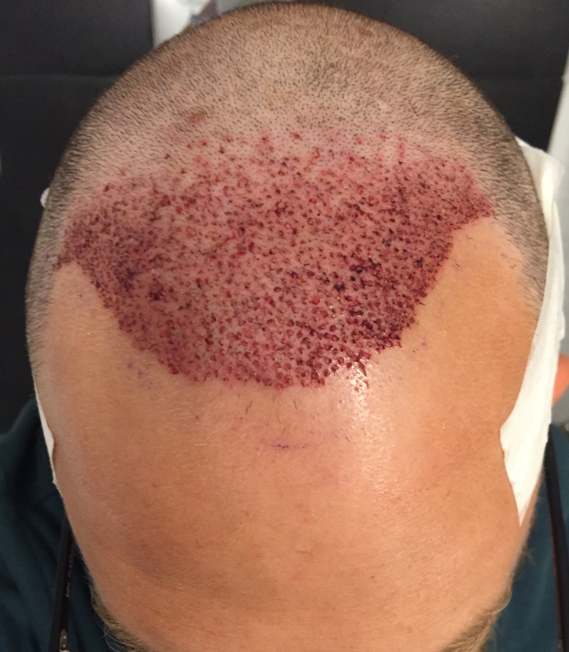 Γενικα παιζει φαγουρα ακομα. Παντου. Σε ολο το τριχωτο. Επισης εβγαλα λιγα μπιμπικια σε ολο το τριχωτο και γενικα ειχα ερεθισμους (ενας φαινεται αρκετα και σε μια φωτο προφιλ). Αυτο με ανησυχησε κ ετσι πηγα μια βολτα απο την κλινικη. Σκεψη ηταν πως το σαμπουαν μου εκανε καποιο ερεθισμο. Πιστευα και εγω οτι δεν ειναι κατι απο την επεμβαση, μιας και τα μπιμπικια και οι ερεθισμοι ηταν διασπαρτοι κ οχι μονο σε δοτρια ληπτρια. Στην κλινικη μου ειπαν πως ειναι απο το ξυρισμα. Το βρηκα λογικο. Δεν το ψαξα παρακατω. Το παρακολουθω ομως κ βλεπουμε. Αλλωστε μου ειπαν πως ισα ισα αυτο το mild ειναι οτι πιο ηπιο παιζει (mild γαρ).