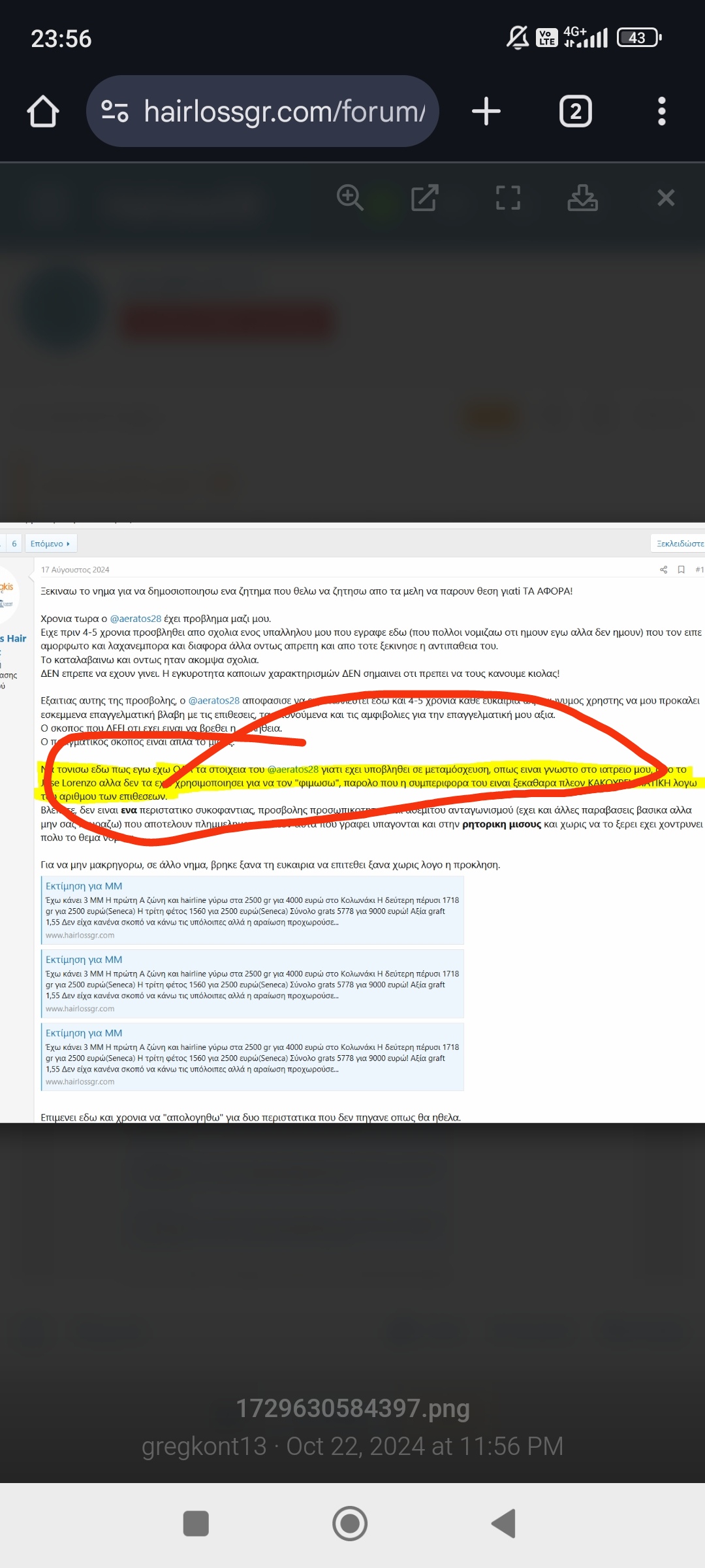 Η προειδοποίηση σου λοιπόν,περί κακουργηματικης συμπεριφοράς μου ΔΕΝ ΕΧΕΙ ΚΑΜΜΙΑ ΝΟΜΙΚΗ ΥΠΟΣΤΑΣΗ όπως προσπαθείς να περάσεις ψευδώς ,διότι δεν υπάρχει κανένας δόλος ..Δεν δημοσίευσα,ούτε έκανα την καταγγελια εγω ,σε δημόσια καταγγελία που έγινε εντός του φόρουμ από μέλος-οι του φόρουμ και πελάτες σου έγιναν ..ούτε ΑΝΑΔΗΜΟΣΙΕΥΣΑ πουθενά αλλού το θέμα ώστε να κάνω όλα αυτά που λες...επειδή δεν θες να το καταλάβεις λοιπόν ,που στο λέω εγώ,είσαι ελεύθερος να κινηθείς όπως θες και να το διαπιστώσεις με κάθε ένομο μέσο για να τελειώνουμε..έχω κάθε δικαίωμα να ρωτάω αν ισχύουν λοιπόν οι καταγγελίες των πελατών σου..γτ αν ισχύουν,ΤΟΤΕ ΑΥΤΟ,ΕΙΝΑΙ ΚΑΚΟΥΡΓΗΜΑΤΙΚΟ ,η προσπάθεια συγκάλυψης δλδ..αν ισχύει λοιπόν,τότε οι πελάτες σου,θα μπορούν να κινηθούν νομικά εναντίον σου..ΟΧΙ ΕΓΩ..εγώ απλά θα ξέρω σαν καταναλωτής την αντιμετώπιση μιας κλινικής και θα μπορώ να έχω σωστή κρίση για το δικό μου συμφέρον ,ως καταναλωτής ..γτ σου ξαναλέω ..δεν σε απείλησα ποτέ σε κανένα μνμ..σε περίπτωση που κινηθείς αυτόνομα ,για να προσπαθήσεις να παραμείνεις μέλος και να συνεχίσεις να επωφελησε από το φόρουμ είπα πως θα κινηθώ νομικά και εγώ αν κάνεις καρι διαφορετικο..γτ κάνεις ότι δεν καταλαβαινεις..?? Έχεις την εντύπωση,πως αν μου κάνεις μήνυση θα το αφήσω έτσι?
