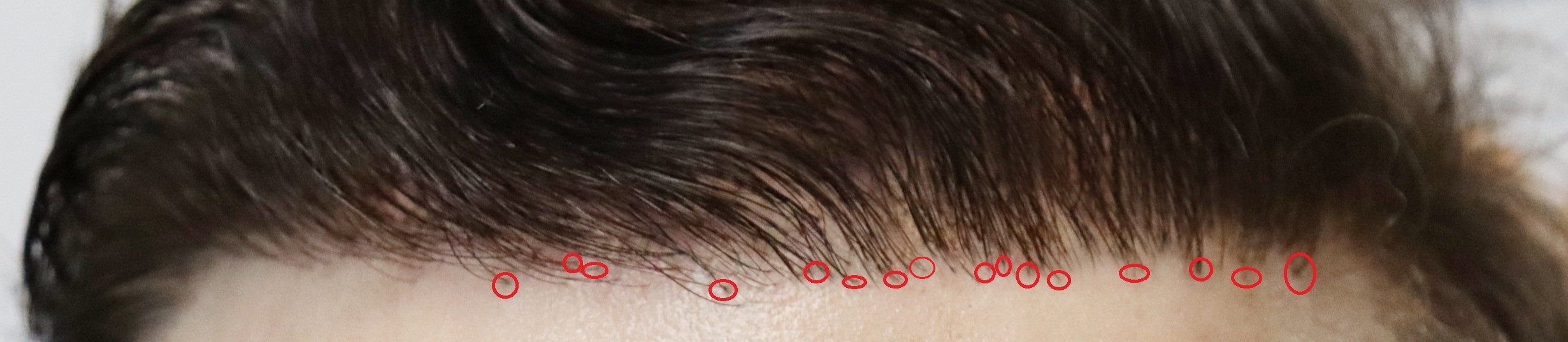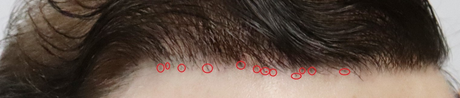 Οι φωτογραφιες ειναι SUPER close -up με στεγνο και βρεγμενο.Αρκετά μέλη ανέφεραν οτι δεν τους φαινεται φυσική αυτή η hairline. Η άποψη μου ειναι ο λόγος ειναι οτι έχει αρκετά πιο χοντρά πολυτριχα κατά μηκος της hairline, αν και δεν ειναι καθαρές οι φωτογραφίες οταν κανεις zoom και θολώνουν για να προσδιοριστούν με ακρίβεια. Γενικά για να φαινεται φυσική μια hairline θα έπρεπε να ειχε λεπτά μονότριχα.