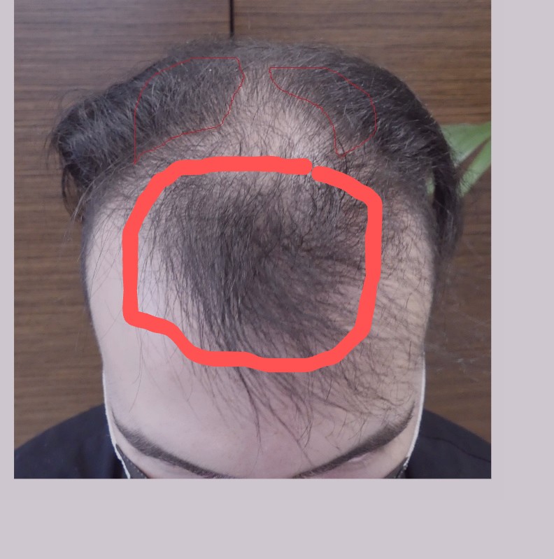 η προσωπική μου άποψη είναι ότι εδώ μετά και την εμφύτευση των ισχυρών τριχών,οι παρακείμενες αδύναμες τρίχες δεν άντεξαν(shock loss).