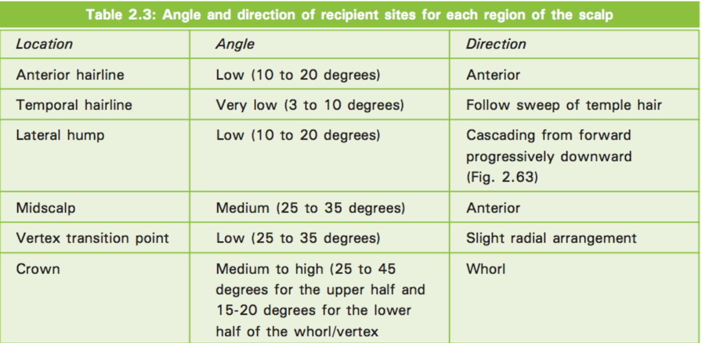 Η ανάλυση του Πάνου έχει κάποια λάθη. Καταρχήν τo sina δεν είναι το συνω (συνημίτονο) αλλά το ημίτονο (ημω), άρα έπρεπε να πάρει την διπλανή στήλη που είναι και δυσμενέστερη, θα του έβγαινε χειρότερο το αποτέλεσμα και θα καταλάβαινε ότι κάτι δεν πάει καλά. Επίσης έχει κάνει κάποιο λάθος στις γωνίες που παίρνει ως προς την hairline. Από το παρακάτω σχήμα φαίνεται ότι στο μπροστινό κομμάτι οι γωνίες ξεκινάνε από 10 μοίρες και κοντά στο τέλος του mid scalp φτάνουν τις 35. Ας πούμε μεσοσταθμικά στο κομμάτι που λέμε forelock zone (δηλαδή 3-4 πρώτα εκατοστά) 25 μοίρες (ή και παραπάνω αν θέλει κάποιος). Αυτό κάνει επίσης τα πράγματα δυσμενέστερα γιατί όσο μικραίνει η γωνία μεγαλώνει το μήκος. Άρα?